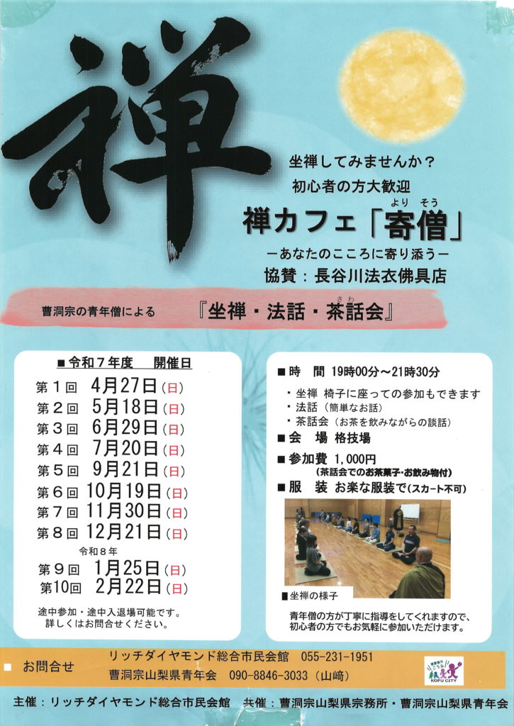 曹洞宗青年僧による『坐禅・法話・茶話会(さわかい)』