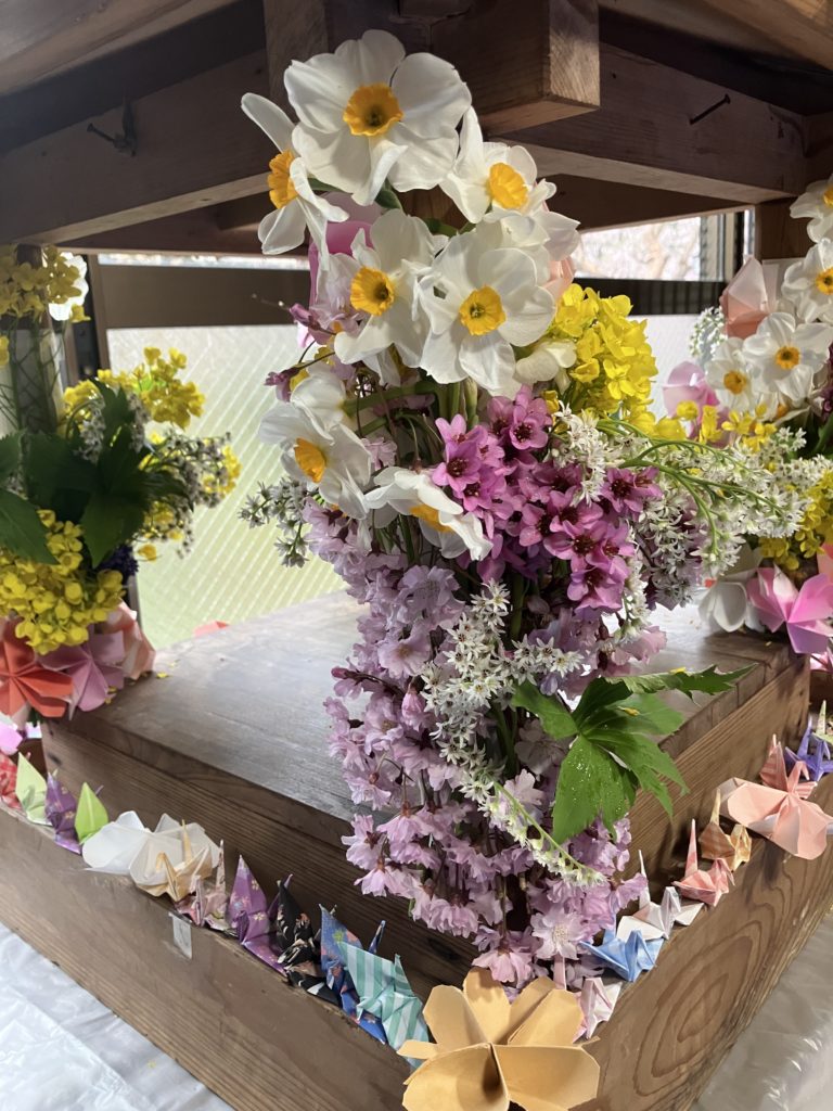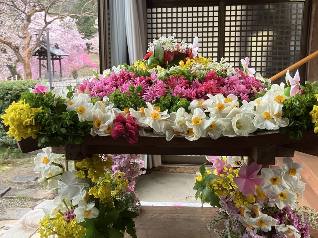 花御堂の花と折り鶴は、志納者の方提供と永昌院境内の花々